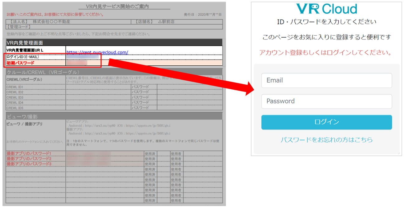 ログインするための ID(E-mail)とパスワードは、ご契約時に各店舗にお配りしております