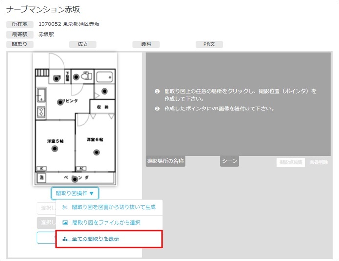間取り図下部の[間取り図操作]内の「全ての間取り図を表示する」をクリック(タップ)します。