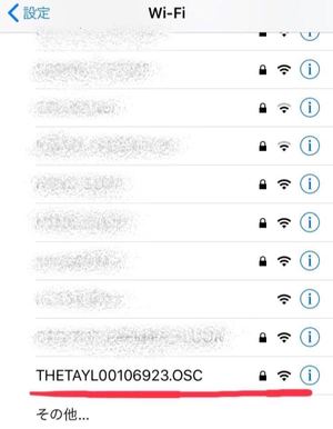 上の例の場合、THETAのSSID(ネットワーク)は「